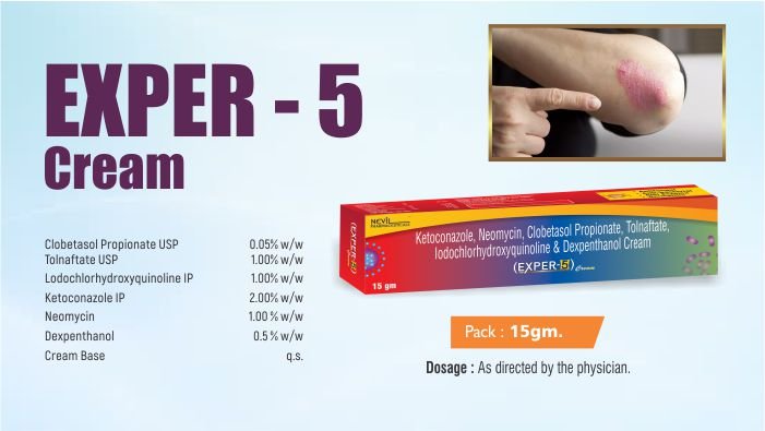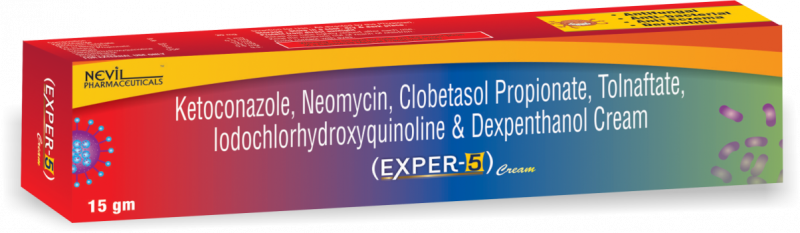 Clobetasol 0.05+Neomycin 1mg+Tolnaflate 1.00+Lodochlorohydroxyquinolin1.0 + Ketoconazole 2.0 + Dexpenthanol 0.5mg